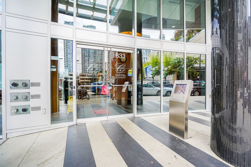 Capitol Residences - 833 Seymour Street, Vancouver, BC V6B 0G4, Canada. Strata Plan BCS3995 - located in Downtown area of Vancouver, near the crossroads Seymour Street and Robson Street. Convenience at your doorstep and privilege to shop on world famous Robson street without worrying about parking.Capitol Residences is situated not far from the Art Gallery and a few blocks from BC Place and GM Place. Walking distance to Starbucks Coffee, Choices Market, Emery Barnes Park, Vancouver International Film Centre, Helmcken Park, Waves Coffee, Pacific Cinematheque, Wall Centre, Language Studies International, Royal Bank, Scotia Bank, Spa, UBC Robson Square, Seawall, David Lam Park, Quayside Marina at Concord Pacific Place, Scotiabank Dance Center, CSIL Canadian As A Second Language Institute, Spa Beauty+Welness Centre, Exhale Yoga Pilates & Dance Studios, Pacific Chiropractic, Massage Therapy, Bambu The Salon, Dairy Queen, Blenz Coffee, Yaletown YYoga, 24-7 Fitness in Yaletown, Kostuik Gallery, Shoppers Drug Mart, Urban Fare, Roundhouse Community Arts and Recreation Centre. Restaurants in the neighbourhood area La Terazza, Games Big Fish, Earls, Yaletown Keg Steakhouse and Bar, Urban Thai Bistro, Hapa Izakaya, Cactus Club Cafe, George Lounge, Fresh Japanese Take out, Drew Cooks and much more. The bus stops near the complex and Vancouver City Skytrain Station is less than 5-minute walk away and Granville Skytrain Station is less than 10-minute walk from the complex. Wall Financial Corporation quality built Capitol Residences in 2011. This 41-level building has a concrete construction, glass exterior finishing and full rain screen. There are 372 units in development and in strata. This building offers great amenities that include an over-height wall-to-wall glass lobby, a concierge, landscaped residential terraces, a fitness centre, a TV lounge, a pool table, a reading room, meeting rooms, four dedicated residential elevators and eco co-op auto network. Most homes feature limestone/marble slab countertops and backsplash, flat-panel slab cabinetry, under-cabinet lighting and satin chrome decorative hardware in the bathrooms. The kitchens boast marble tile flooring, flat-panel slab cabinetry, polished slab countertops and back splash, stainless steel appliances, a stainless steel sink, a waste disposal and a single-lever faucet with spray.
