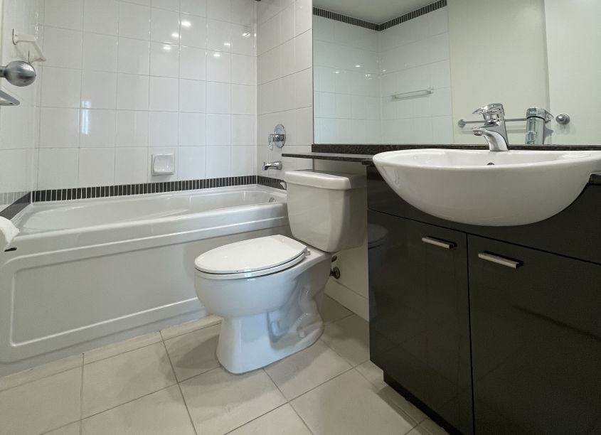 West One by Concord in its newest Beach Crescent neighbourhood. High end luxury finishing in this well designed corner 1 Bedroom and Den facing SW. Open bar-style kitchen with oversize custom granite breakfast bar and countertops, s/s appl ances with gas range, European styled cabinets and stylish porcelain backsplash. The bathroom includes granite countertops with cantilevered sink and designer faucet, deep soaker tub, porcelain floors and designer wall tiles. The living room and den enjoy floor to ceiling windows and both connect to an outdoor balcony with views to False Creek, Granville Island & English Bay. West One provides its guests with full access to Club Viva, a resort style facility with a state of the art fitness club and spa that includes a pool, steam room, hot tub, sauna and massage rooms, as well as a common barbecue area, rooftop patio, party room, pool tables, squash courts, guest suite and concierge service.