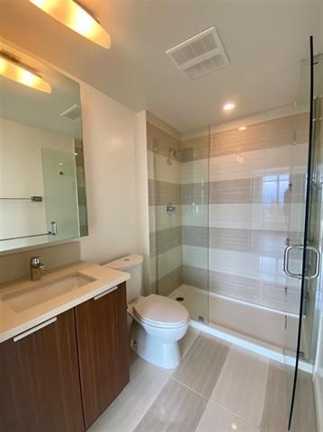 SOUTHWEST CORNER SUITE that boasts some amazing views of the city and greenery with an abundant source of NATURAL LIGHT. This 2 bed and 2 bath features spacious OPEN CONCEPT layout equipped with quartz countertops, porcelain tile, engineered hard wood flooring, and polished chrome hardware. Walking distance to Surrey Central Station (8 min), T&T Supermarket, Walmart, SFU (6 min), Surrey Library (5 min), City Hall. Amenities include: Fitness room, Media room, Concierge with a top floor that includes indoor and outdoor areas with a kitchen for entertaining guests. 1 parking and 1 storage locker