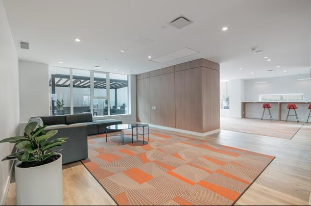 Defined by clean, contemporray spaces, the bright interiors at KIng George Hub feature refined finishes that complement the community's modern architectureThe kitchen and dining spaces are interconnected, large windows frame stunning panoramic views and warm laminate wood flooring throughout.