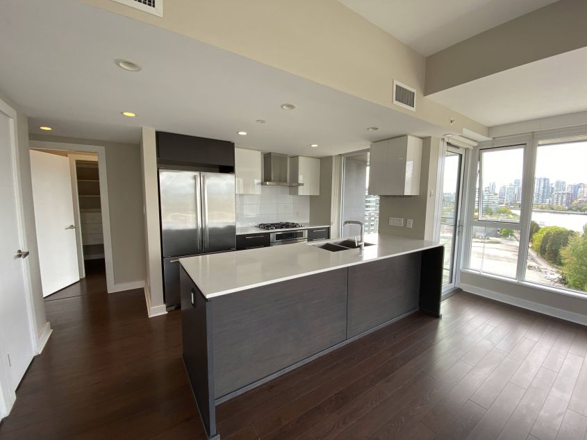 Located in False Creek near Olympic Village, you have easy access to downtown core, waterways, transportation corridors and attractions. This 2 bedrooms + Flex room corner unit with a highly functional floorplan offers a gourmet kitchen with gas range, sizeable oven and french door stainless steel refrigerator. The open concept kitchen extends to the living room making it perfect for entertaining. At the end of the kitchen, you have a patio with views of False Creek and Science World. Beautiful European made laminate flooring lines the living area while the bedroom has stain-resistant contemporary heathered pattern carpet. For the Feng Shui savvy, enjoy a perfect balance of positive energy throughout, CENTRAL was created in consultation with Sherman Tai, a Feng Shui master with a world-wide reputation for excellence. He consulted on prestigious projects like Holt Renfrew, HSBC interiors worldwide as well as the Richmond Oval.
