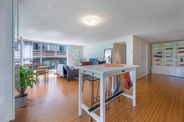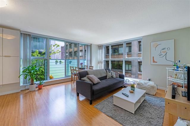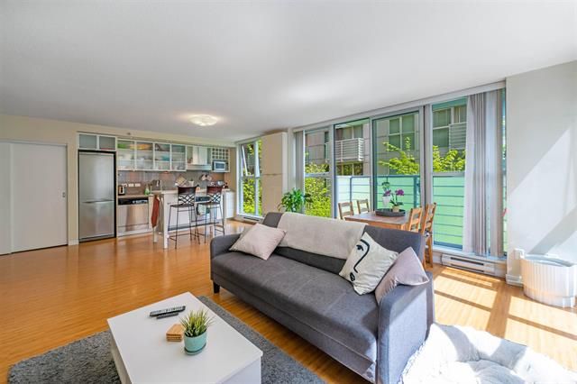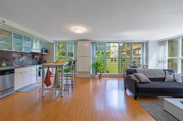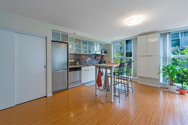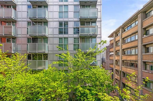 Central Downtown Vancouver living at the Smart building by Concord Pacific, within the trendy Gastown neighborhood. Bright open-concept 2 bedroom+den corner suite that is situated on the building's quieter side, with wall-to-wall windows, and a Juliette balcony that faces an inner courtyard. The spacious den can be transformed into a private office or room. Contemporary finishes throughout feature bamboo pattern flooring, linear modernist Euro-style kitchen w/ stainless appliances, and ample storage space. Easily walk to Gastown's renowned patios, Waterfront skytrain station, and corporate tech offices including Amazon, Apple, Telus, & Microsoft