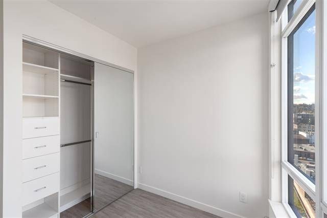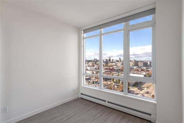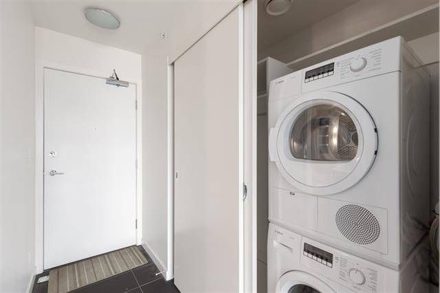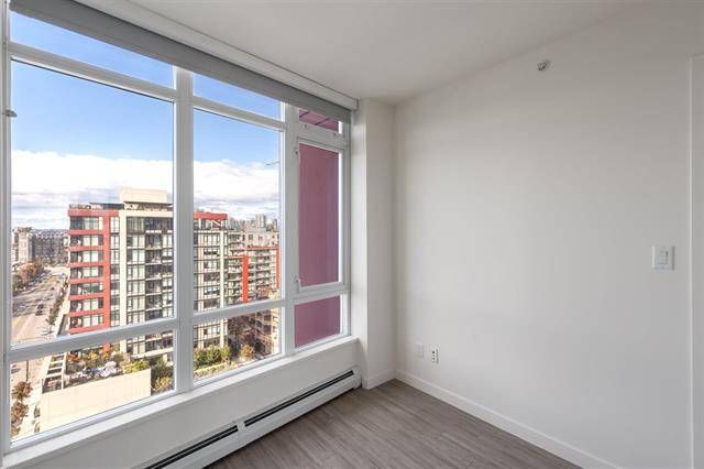 One of the tallest buildings in the Olympic Village. Stunning views of the City. Full of sunshine, this condo is facing southwest. 1 bedroom, 1 baths features a open kitchen with Bosch gas stove. The den could be used as a storage or an office. The master bedroom is located next to the entry and has a solarium at the end of it. 1 minute walking to Craft Beer, Urban Fare Grocery, Terra Breads, London Drugs, Liquor Store and community center. Starbucks is located at the base of the building. Close to Canada Line & Expo Sky Train Station. 8 minutes walk to Science World, and 5 minutes driving to Downtown