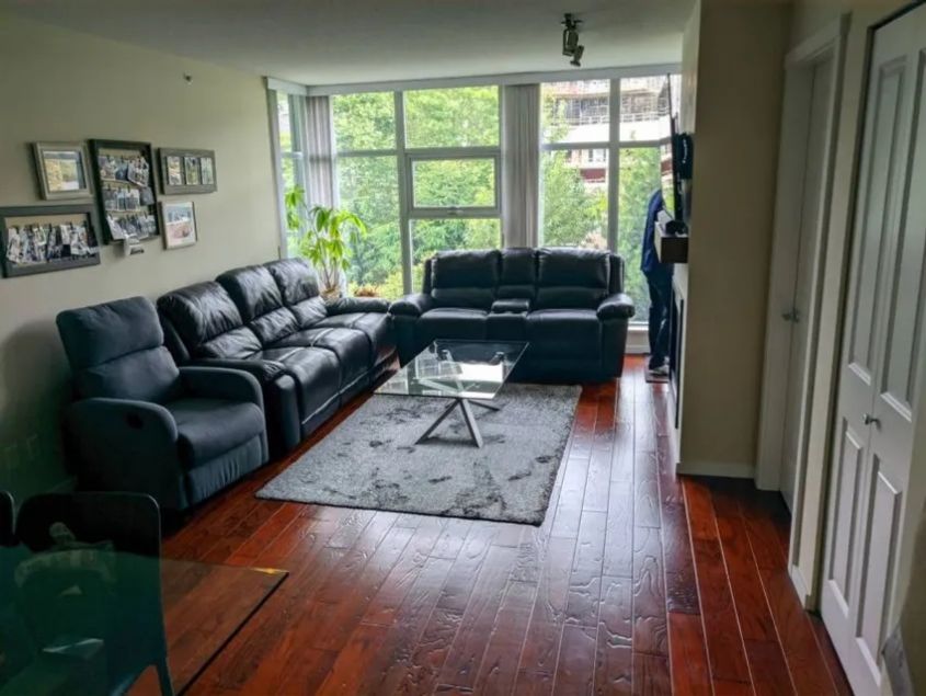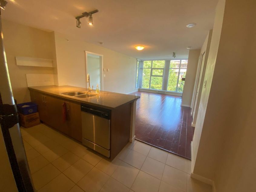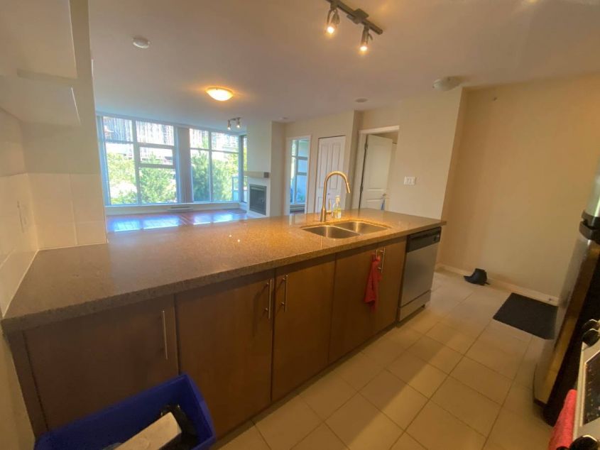 Welcome to Watercolours by Polygon. This North Facing Unit features Open Floor Plan, Cherry hardwood floors. Modern Kitchen with Stainless Steel Appliances, Gas Stove, Built-in Microwave, Granite Counter, Undermount Sinks, Breakfast Bar.
