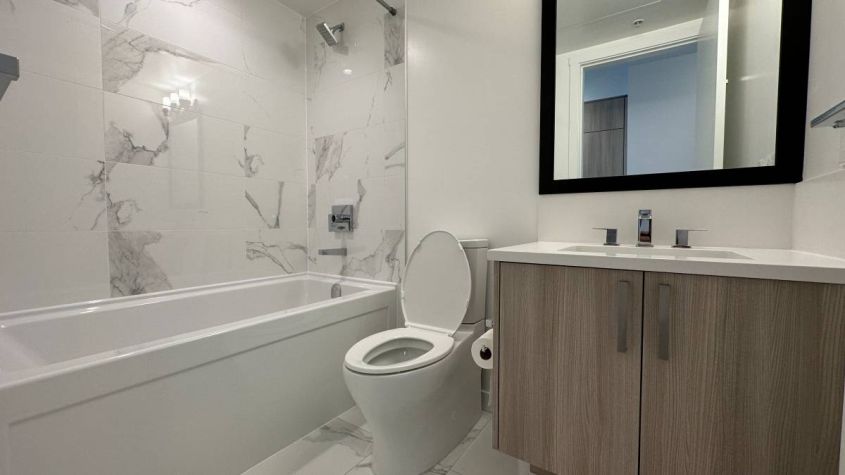 Spacious design, 8'6 ceilings. Floating style cabinet in the bathroom with quartz countertop. 25,000sf of amenities -- fitness centre and yoga studio, private dining, business/study lounge, meeting rooms and the ONE CLUB -- an indoor/outdoor rooftop lounge with panoramic view from the 44th floor with BBQ stations, firepit and a chef's kitchen.
