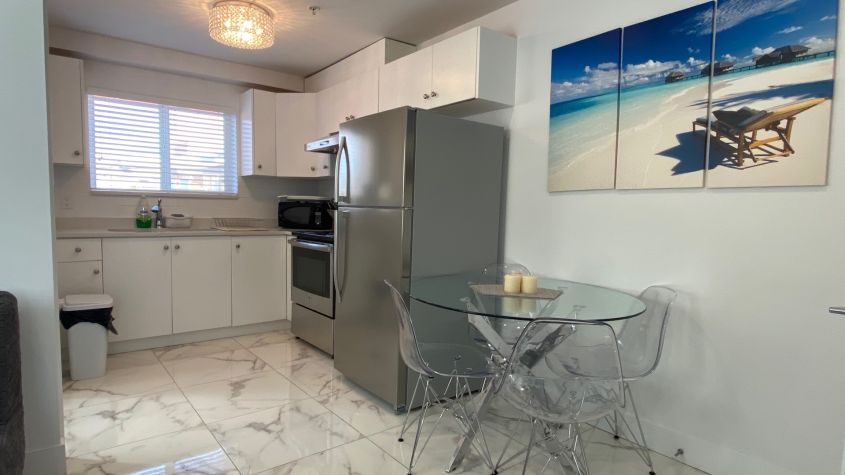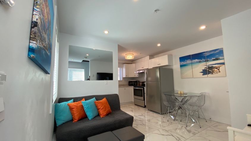 Tastefully furnished NEW 2 bedroom laneway house with in-suite laundry. This home has a bright interior with oversized windows, private fully fenced & landscaped backyard. Located close to transit.