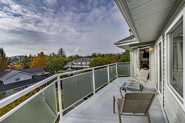 Two bedrooms, 2 bathrooms in a spacious and bright PENTHOUSE CORNER unit with lots of windows. Centrally located at popular Bear Creek neighborhood just off of King George Hwy. Walking distance to all amenities. Well maintained family complex, lots of visitor parking and close to sky train, Bear Creek Park, Costco, Kwantlen University, SFU, Restaurants, Transit, Medical Services and Recreational Parks. In-unit amenities: washer, dryer, fridge, stove, microwave, oven, dishwasher Includes one parking & storage locker.