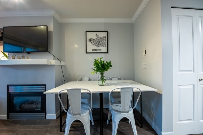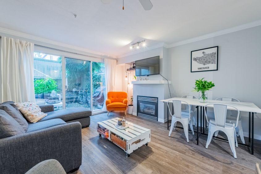 An enchanted gem located in Kitsilano, this 2 bedrooms, 2 level townhome leads to a spacious patio from the living room. Cozy up to the fireplace while sharing a movie on the comfy couch, or cook a simple meal in the well-equipped kitchen. Jericho Beach and 4th Avenue boutique shops and restaurants are just a stroll away.