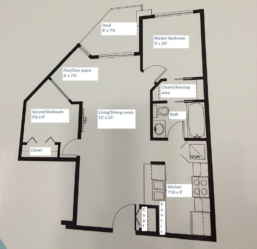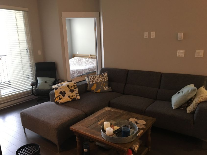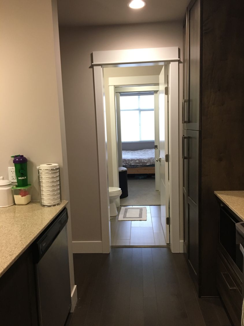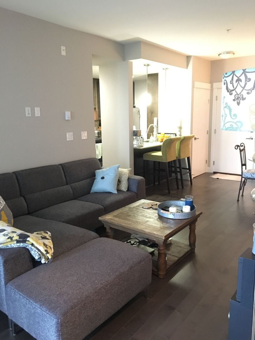 This 5th floor C plan facing the river features 2 bedrooms and a den. Bedrooms are found on opposite sides of the living room. Also features quartz countertop, stainless steel appliances, vinyl flooring and open concept living in every home. The unit is located on the quiet side of the building and on the edge of Port Coquitlam's beautiful Traboulay PoCo Trail and Gates Park, nature is right at your door step.