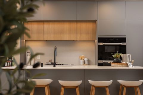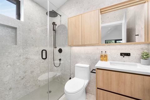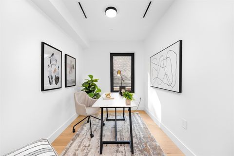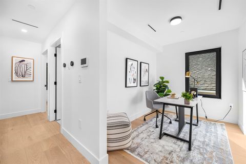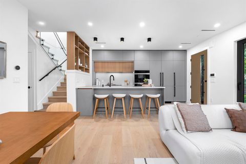 The well-appointed kitchen is a chef's dream, featuring modern appliances, sleek countertops, and plenty of storage space. Prepare delicious meals with ease and gather in the dining area or living room with a view into the private front yard.