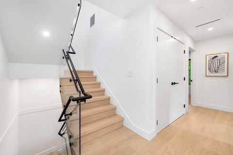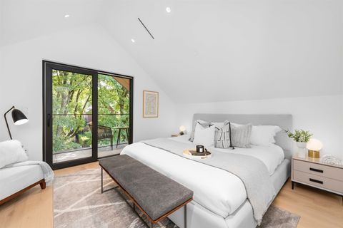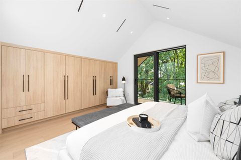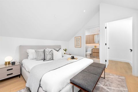 The second floor is a peaceful retreat, all bedrooms are bright, spacious and with plenty of closet space. A bright and convenient den could make for the perfect home office or secondary TV room. The third floor primary bedroom suite is the jewel. Under the vaulted A-frame roofline, it’s spacious yet private, complemented by a luxurious en-suite bathroom and massive closet storage.
