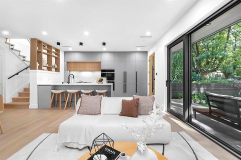 Welcome to this inviting 3 bedroom, 3 bathroom home that offers the perfect blend of comfort and style. 1500+ sqft over 3 storeys, this is a modern open-concept ground floor, secondary bedrooms and den above, and a spacious main bedroom suite on the top floor, complete with covered balcony overlooking a mature tree-lined street. Secure covered single garage parking with lane access at the rear of the property.