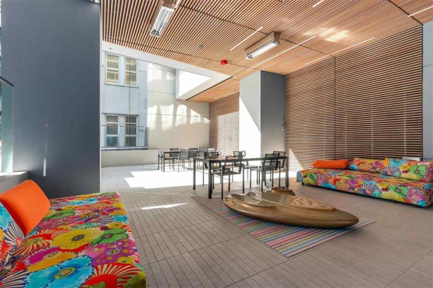 Telus Gardens offers gourmet kitchens with Miele appliances, floor to ceiling windows, high gloss finish cabinetry, sustainable bamboo H/W floors, Kohler bathroom fixtures and marble bathroom flooring.