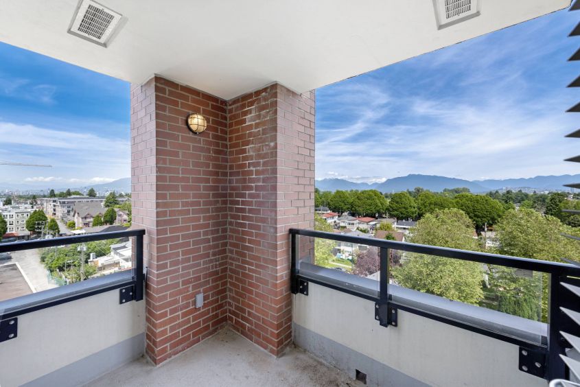 Exclusive 2 bedroom corner unit with private balcony in highly sought after Renfrew - Collingwood area on Kingsway & Earles Street. This condo unit offers 824 SqFt of living space, very efficient floor plan with laminated floor in the dining & living room & carpets in 2 bedrooms. Enjoy the mountain & city view from your balcony! Comes with 1 extra large parking and 1 storage. Close to all amenities including restaurants, pubs, intercultural community, & transit.