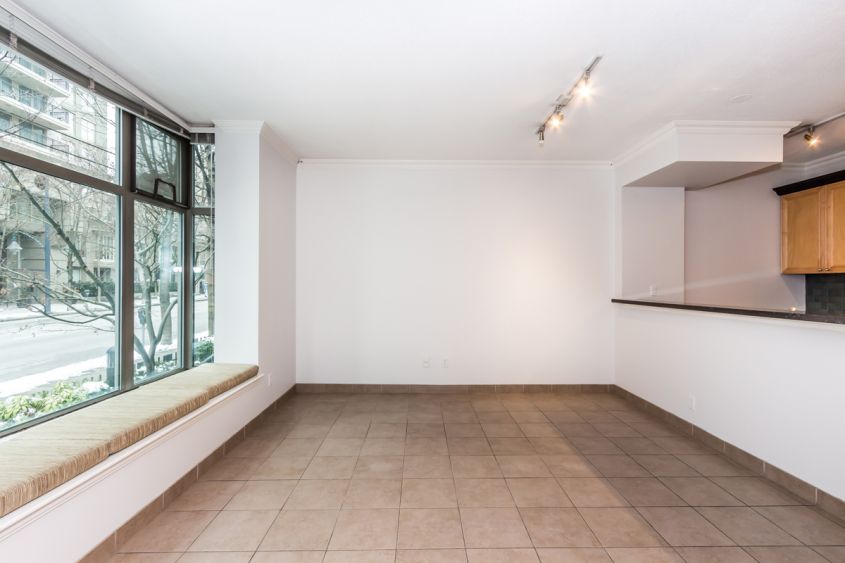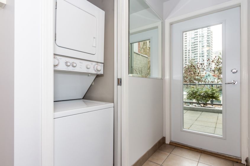 Located on one of the most sought-after streets in Downtown, Richards Street. This alluring one level townhome is located in exclusive Yaletown where convenience is at your corridor. Enjoy a book by the beautiful bay windows that line the living room segregated by the granite kitchen island bar teamed with gas range and stainless steel appliances making it a pleasure to entertain with all those counter space. Your private 500 SF patio has a lovely maple tree that can compliment your glass of wine or coffee on a nice sunny day.