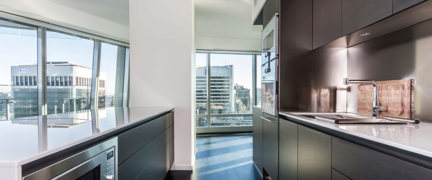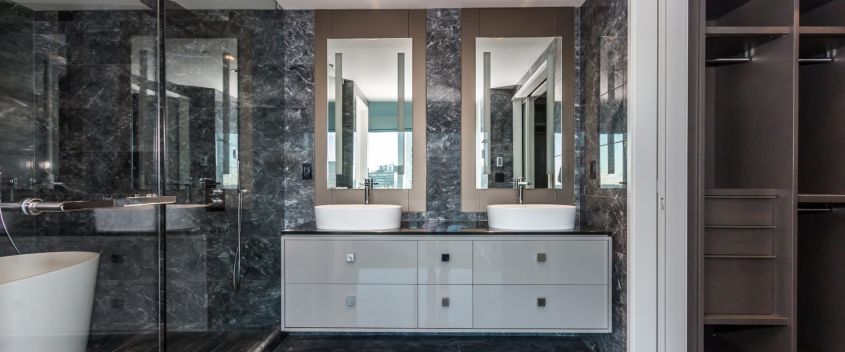 LOCATED IN THE HEART OF DOWNTOWN VANCOUVER! Modern 2 bedrooms with a unique overlooking view of Coal Harbour, North Shore, Stanley Park and the city. Both bedrooms with ensuite bathrooms featuring luxurious marble with Gessie fixtures, Victoria + Albert volcanic limestone sinks/tub and Laufen wall – hung toilets. With open concept kitchen, living room and dining room.