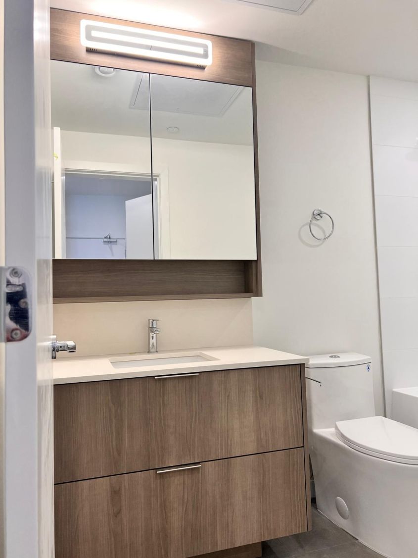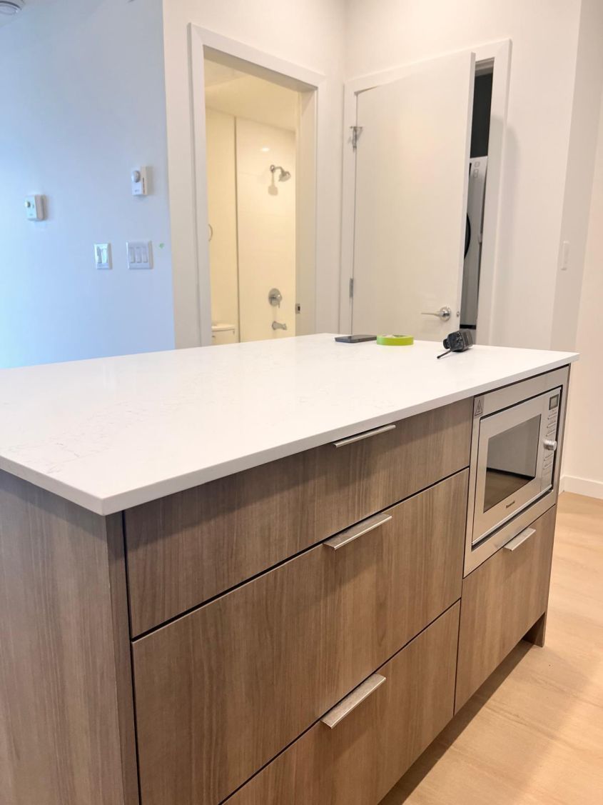 Welcome to Viktor, centrally located near Surrey Centre, with easy access to all amenities, including the skytrain. The spacious unit offers modern living, featuring an open kitchen, stunning quartz countertops, and laminate flooring throughout. Enjoy the vibrant, walkable community filled with shops, parks and restaurants. Includes one parking spot.